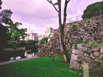 大分市街地にある平城跡地で、現在は人質櫓と宗門櫓が現存している以外は復元された廊下橋や大手門が残るのみ。三の丸跡地には現在県庁や市役所がある。特徴的なのが、人柱お宮を祀った祠。7月の炎天下ということもあって、夕方だったが観光客はほかに一人もいなかった。