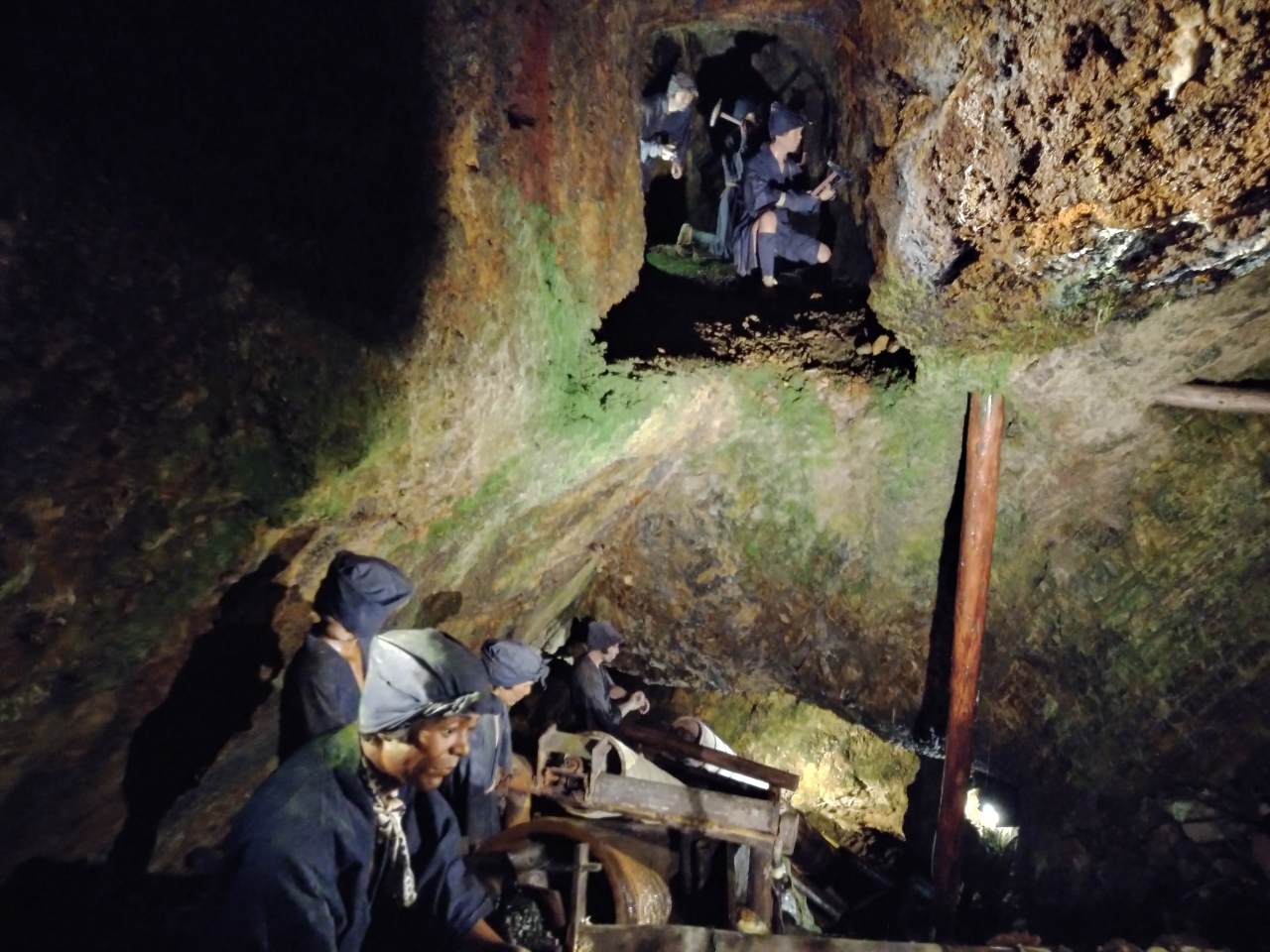 江戸時代の坑道と、明治以降の坑道が二つ残された史跡で、有名な「道遊の割戸」も歩いて行ける。明治以降の坑道は正直トロッコが残されただけの見ごたえがあまりないものだが、江戸時代の坑道はかなり複雑で、当時をしのぶことが出来る蝋人形等もあり、雰囲気に浸ることが出来る。