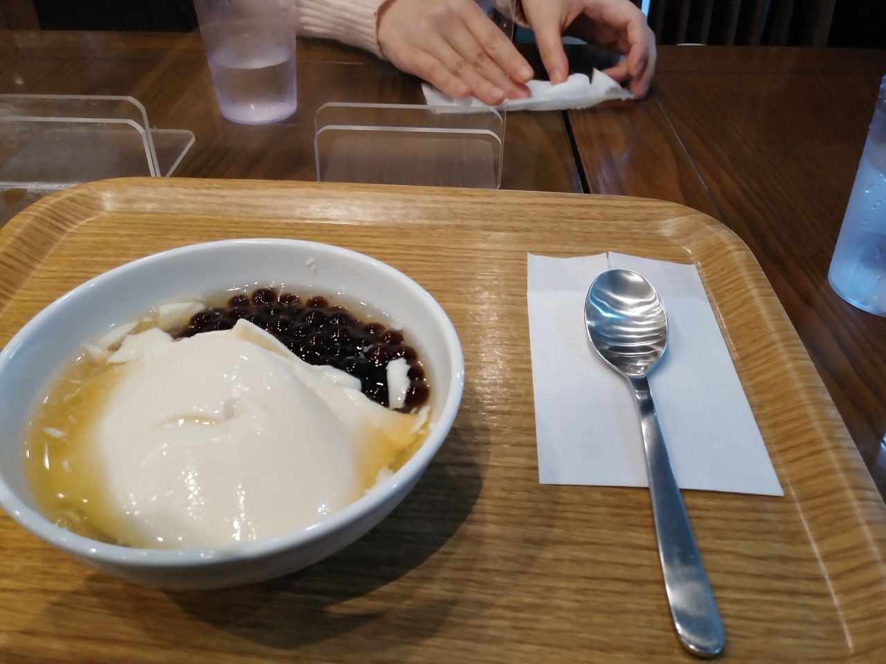いまや日本中に店舗が展開される春水堂の天神店。店舗ごとにオリジナルメニューを用意するなど、工夫も見える。ラズベリーティーのタピオカ入りや、台湾名物豆腐花など、特に女子には目移りするラインナップが並ぶ。カップのお茶は3杯までお代わり可能。