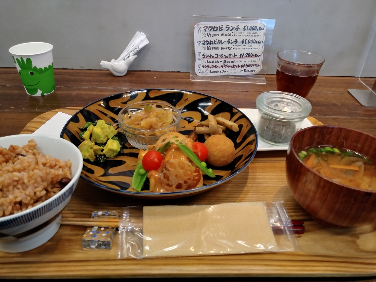 平和記念公園近くの住宅街にある、自然食材の販売店。日替わりの食材を用いた総菜や、ヴィーガンランチもイートインで楽しめる。食材は、玄米やみそはもちろん、甘味料や菓子まで幅広く揃う。ランチは、マクロビランチとマクロビカレーから選べ、値段以上の満足感あり。