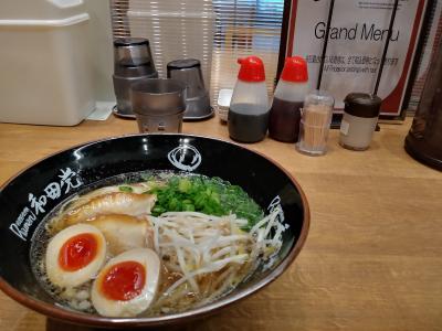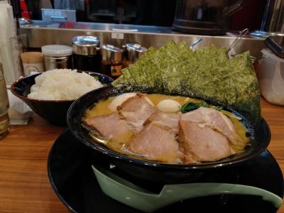 久しぶりの家系ラーメン。ディナータイムはご飯無料とはいかず、100円だが、量は自分で調節できる。スープは背油こってりで、海苔と味付け煮卵、大振りのチャーシューと定番トッピング。麺は硬めをチョイスしたが、ややぼそぼそした歯ごたえでちょっと残念。コスパ的にはやや割高感あり。