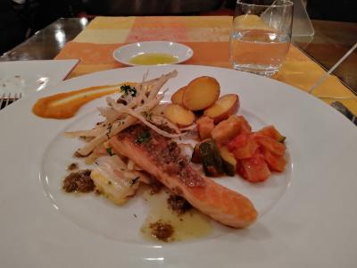 東京駅近辺で、目先を変えてフレンチにトライ。スープ又はサラダと、メイン料理、それにコーヒーとデザートがついて約2000円と、この立地にしてはリーズナブル。メインは魚と肉3品から選べ、デザートもきちんと感がある、充実したランチでした。
