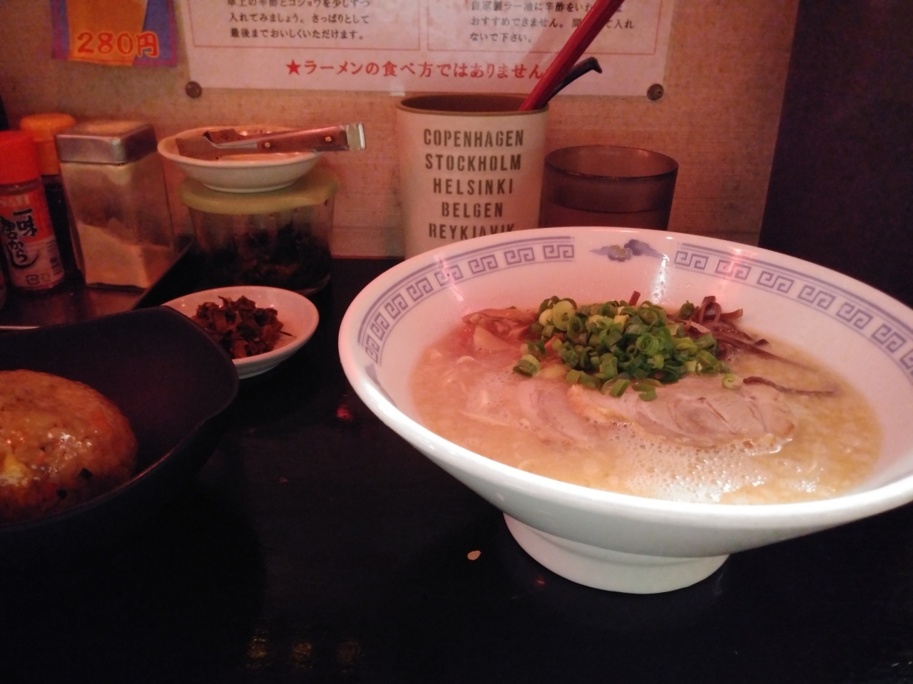 そごうバスセンター7Fの食堂街にあるラーメン屋。広島風つけ麺や呉の名物冷麺も充実しているが、鶏がらとんこつをベースにした白が一番おススメ。トッピングの高菜とも相性が良く、替え玉もぺろりと行ける。赤はパンチの効いた辛みが特徴。