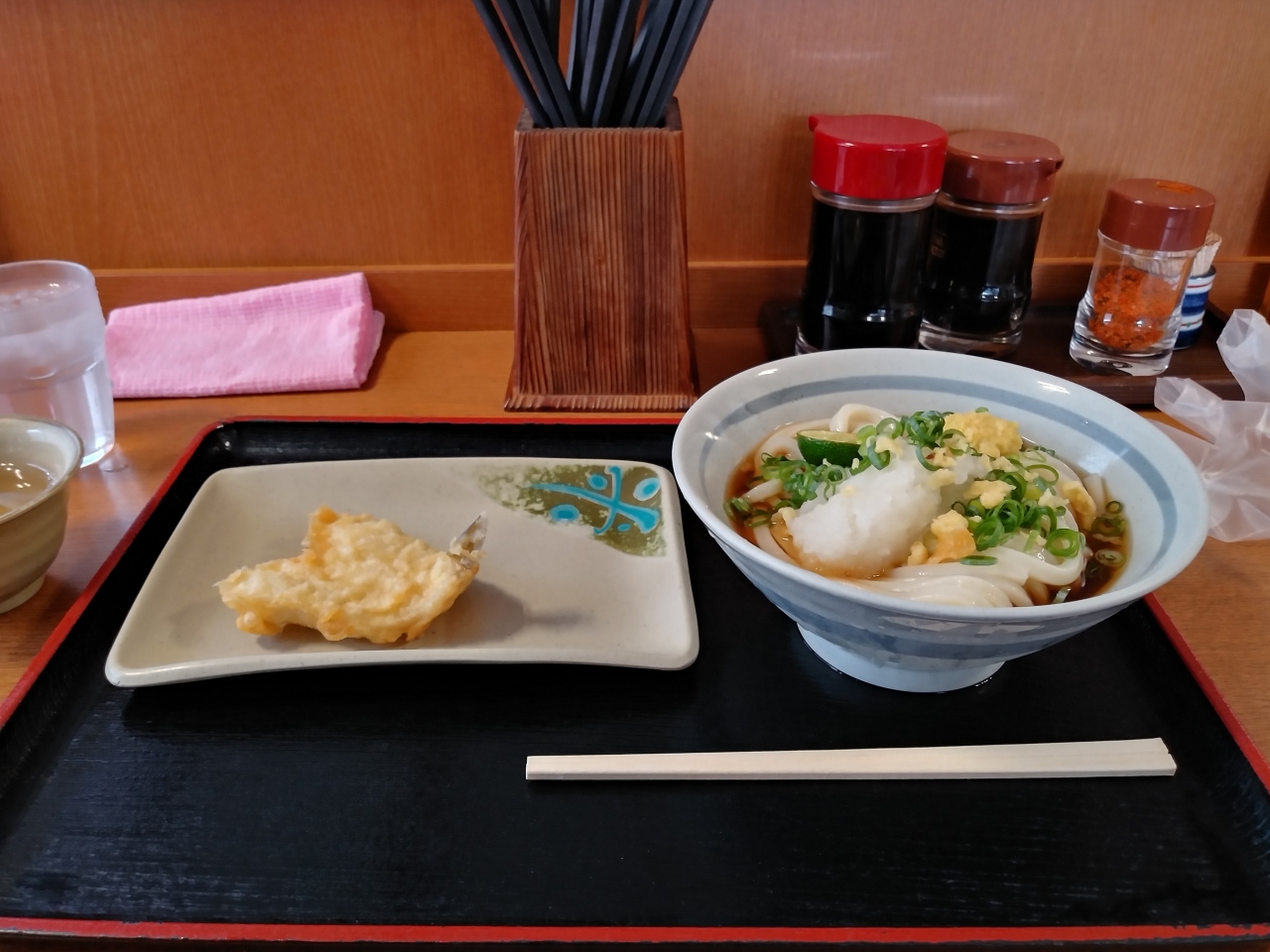 うどんとおむすびに関しては老舗で、広島市内に数店舗ある模様。むすびは手作り感がすごく、素朴な塩味でいくらでも食べられるサイズ。他方、うどんは、麺は程よくコシがあるものの、具とスープは正直大量生産感がぬぐえず、割高感も感じた。