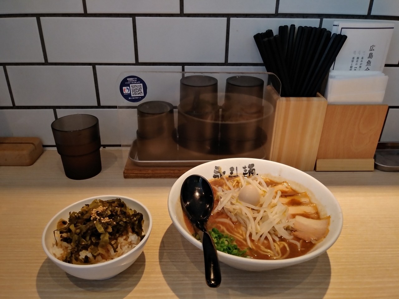 一時期一世を風靡した魚介系ラーメンのうち、今も根強い人気を持つさんまラーメンの店。広島市中心部にも店舗があり、こちらはショッピングモールの1Fにあるため休日は家族連れでいっぱい。さんまラーメンは魚介の旨味が詰まったくどくない味で、もたれることなく食べられる。