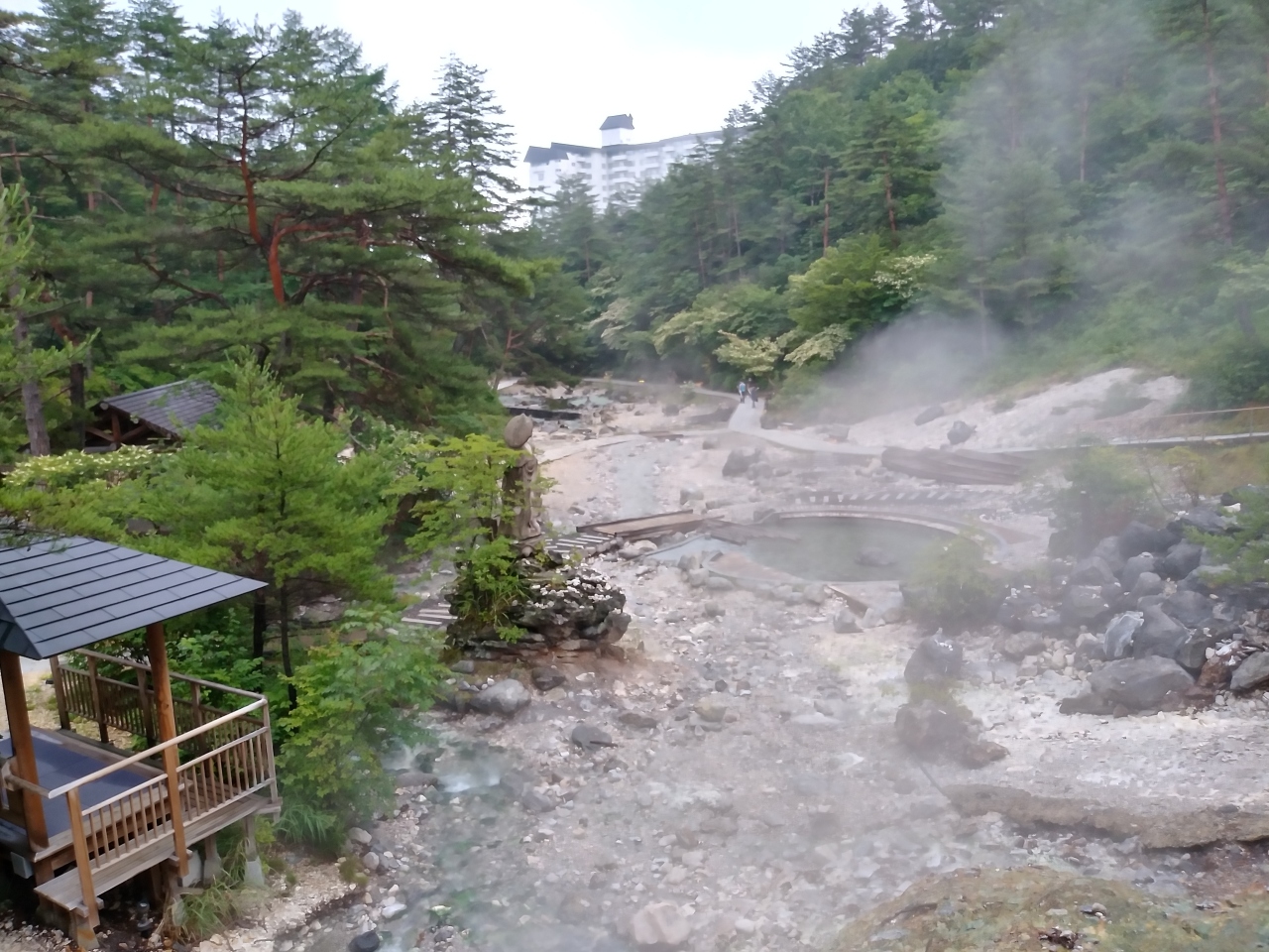 西の河原公園の真上に位置するおおるりグループのホテル。湯畑からは徒歩15分ほどで着くが、やや傾斜がきつい坂を上ることになる。送迎バスがあるのでうまく利用したい。値段は1泊2食付きで約7000円、おまけにアルコール1杯無料で、追加のアルコールも1杯200円ほどと、良心的にもほどがあるプライス。やや古びているが、清潔感は十分。空室があればぜひ泊まりたいホテル。
