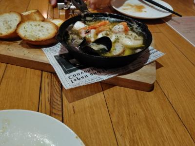 広島市のスペインバルの2号店。リーズナブルな値段設定とバルらしい雰囲気の店で、コースで飲み放題付きでも2名で1万円行かない料金。アヒージョとパエリアはなかなか本格的で楽しめた。メインの肉料理もちょうどいいボリューム。