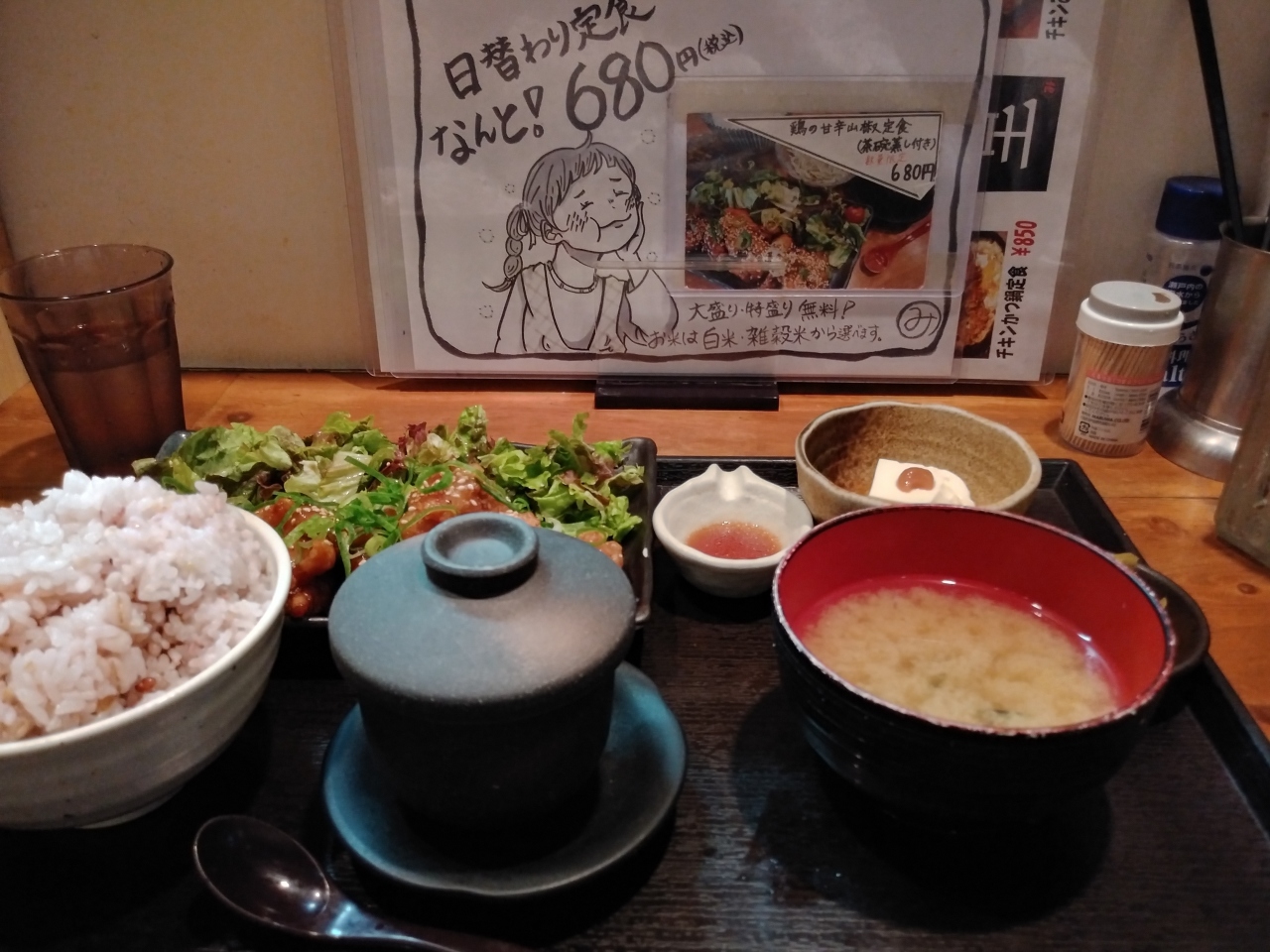 コスパに定評があったので訪問。ランチは日替わり他10種類以上からあり、白ご飯か雑穀米が選べる。日替わりは680円という値段の割にボリュームが素晴らしく、また味付けも丁寧。夜は居酒屋になるということで、是非訪問してみたいものだ。