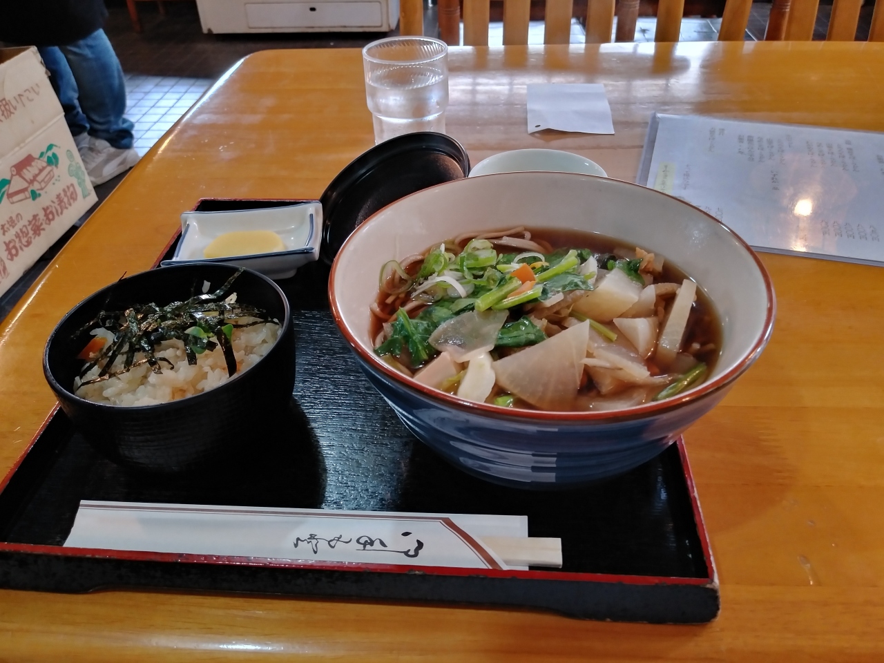 北鎌倉駅から円覚寺、東慶寺を見て、明月院まで観光したら、鶴岡八幡宮まで移動する前にこちらで腹ごしらえをお奨め。鎌倉といえば精進料理が有名だが、いかんせん高く、店も混む。こちらは鎌倉名物、けんちんそばと炊き込みご飯のセットが有名で、けんちんそばはけんちん汁にコシのあるそばをぶち込んだ斬新な味わい。観光客でにぎわっていました。
