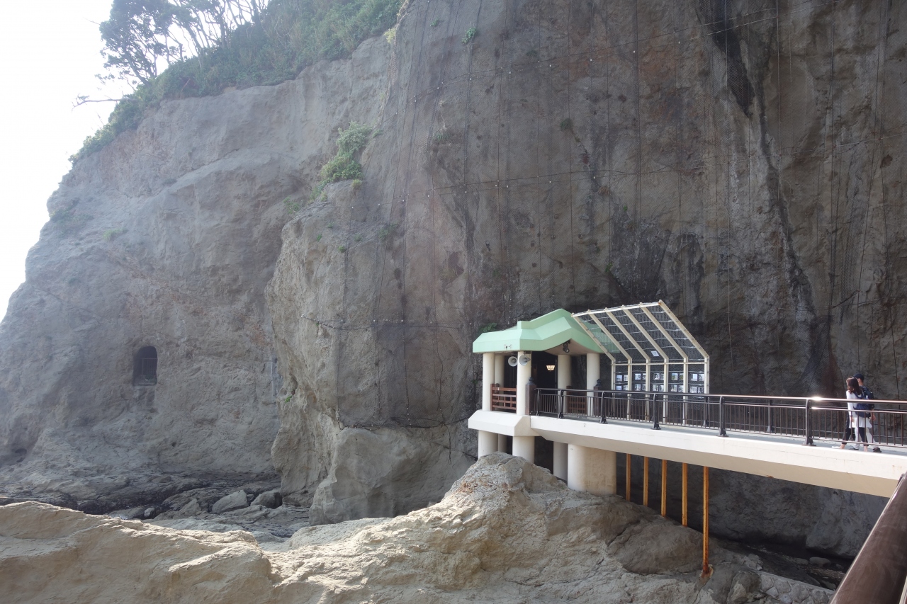 - 江の島に渡って国道沿いを歩けばすぐ。