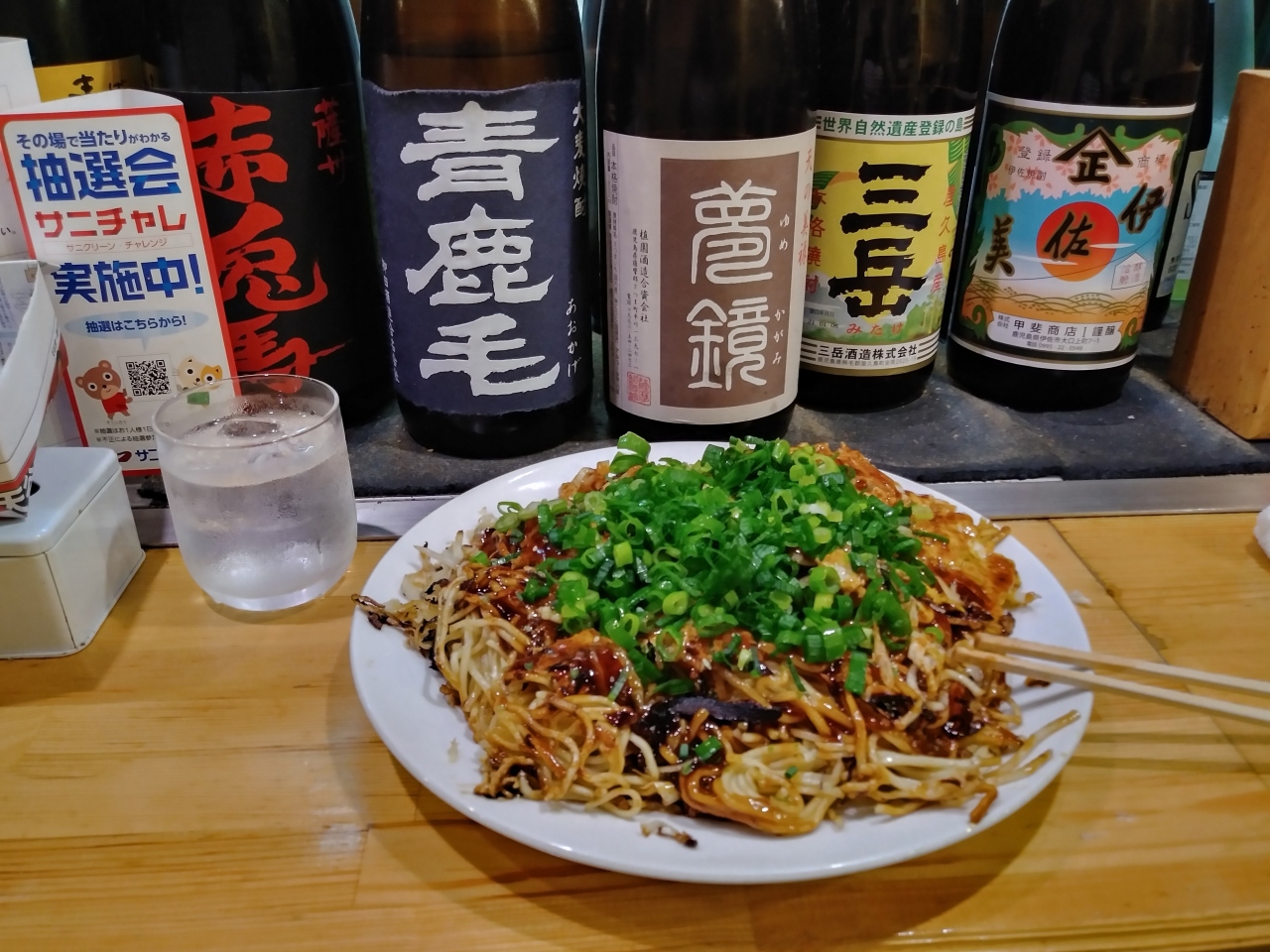 お好み焼きは700円とリーズナブルだが、1000円越えのホルモン・煮込み入りお好み焼きをぜひ試してほしい。すなずりのアヒージョや牛コウネの鉄板焼き、明太レンコンなど、鉄板料理も豊富。焼酎も三岳をはじめ品ぞろえよし。