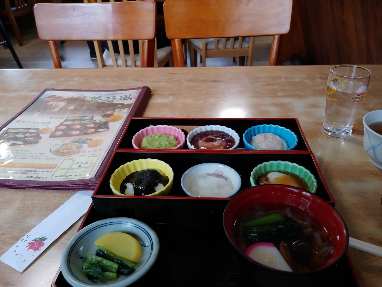平泉の名物料理といえば、藤原氏にちなんだ祝いの餅御膳。この店以外にも、中尊寺前の平泉レストハウスが餅料理を提供するようです。甘い餅、辛い餅など10種類の餅と雑煮がふるまわれるが、全体の量はあまり多くはなく、もたれることもないので中尊寺観光前後の腹ごしらえに最適。