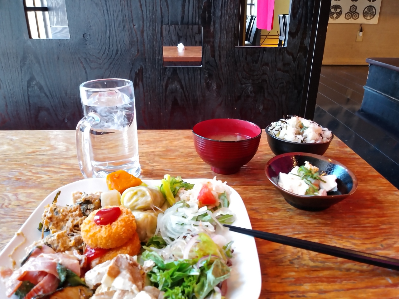 広島市の本通りから徒歩3分ほどのビルにある、1回限りのビュッフェスタイルの店。揚げ物やサラダはもちろん、比較的手の込んだ煮物などもあり、選ぶのに飽きない。味はどれも文句なく、ご飯と味噌汁はお代わり自由なこともあり、金額の割にコスパは高いと感じた。