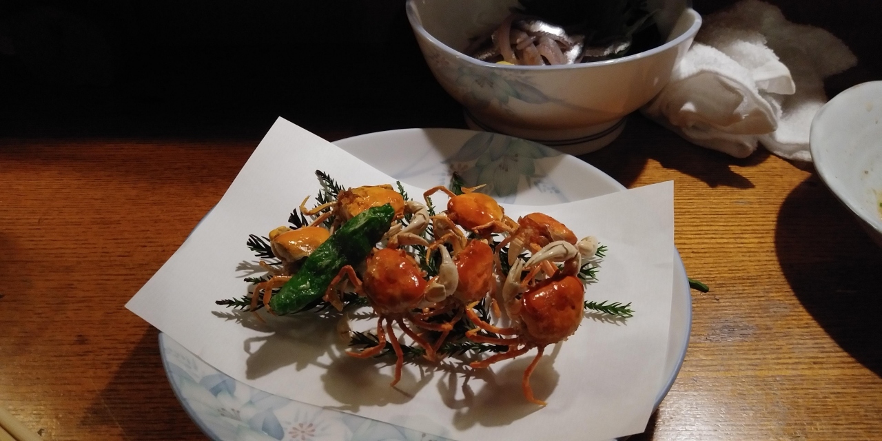 広島へ来るたび気になっていた住宅地に佇む昔ながらの雰囲気のある居酒屋。一人客も歓迎のカウンターが広いのでゆっくりできる。料理はここでしかないペペロンホルモンや沢蟹のから揚げなどをオーダー。しめは茶そば。掘り出し物を見つけた気分になった。