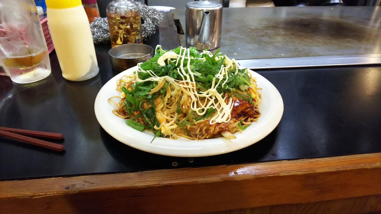 広島風お好み焼きの店は中心部にはたくさんあるが,こちらは住宅街に近いエリアにある店で,鉄板で焼く一品料理も人気。天ぷらや鉄板焼きで腹ごしらえをして,ガーリックパウダーのしっかり入ったお好み焼きと焼酎でしめるのをおすすめ。