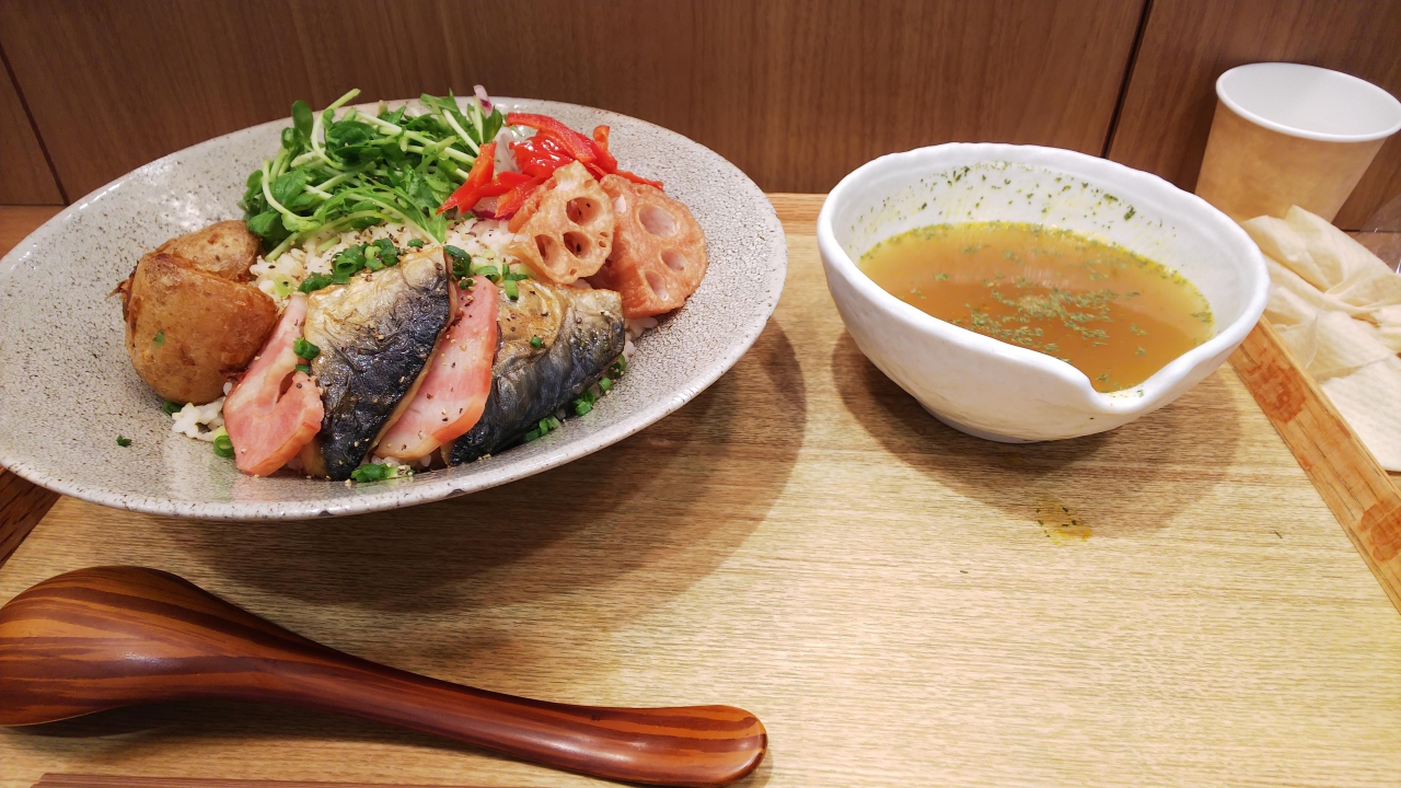 東京駅地下や八重洲口近辺には目移りするくらいたくさんの店があるが,丸の内線に乗り換えて移動するのが昼食時だとエキナカは意外と選択肢がない。ここはヘルシーなスープかけご飯を3種類ほどそろえていて,素早く食べれるうえにきちんと食事が出来た感があるのがいい。出張時に重宝しています。