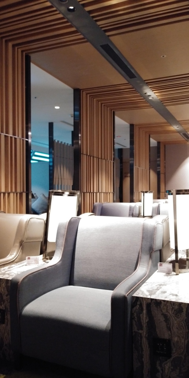 桃園空港の制限エリア内にあり,日本行きの便の待ち時間に利用価値大。フードはつまみ類のほか,サラダやハム,チーズくらいだが,ビール,ワインが飲み放題なので,小腹を満たすのに特に不満はない。椅子はゆったりと広く,リラックスできる。