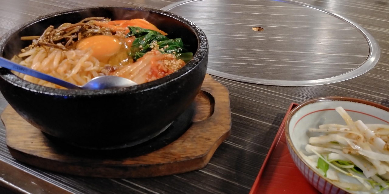 夜はホルモン焼肉の店だが,金土日だけはランチ営業をしている。ランチは4種類で,この日はビビンバをオーダー。100円でご飯を大盛に出来る。サムギョプサルや焼き肉ランチもあり,アルコール類もオーダー可能。閑静な住宅街にある,隠れ家的焼き肉店。