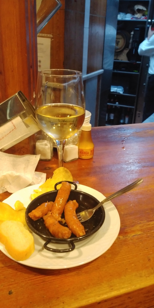 グラナダのバルらしく,ドリンク1杯頼むとおつまみのタパスが1皿無料でついてくる。かなり人気のレストランのようだが,バルなら空いた隙に一人二人なら入れる可能性がある。スタッフもフレンドリーで,常連客の感じもいい。また立ち寄りたいバル。