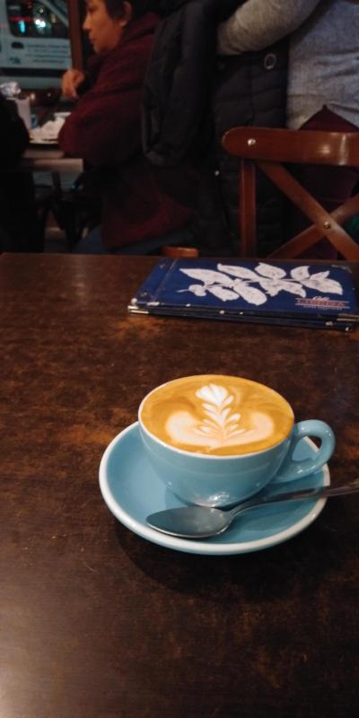 お隣ポルトガルの名を冠したカフェテリアで、落ち着いた雰囲気のなか、各種コーヒーとペイストリーが楽しめる。カフェ・コン・レーチェは凝った淹れ方で、接客態度もなかなかよい。ペイストリーはいろいろあるので、目移りすること必至。