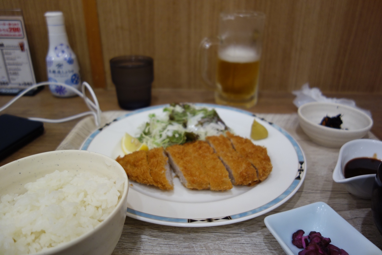 羽田空港で夕食を取るのに利用。空港グルメの充実したエリアから少し離れている食堂で,日替わり定食等がメイン。ビールと定食併せて1700円と空港プライスではあるものの,それなりに満足できるレベルの食事は出してくれる。