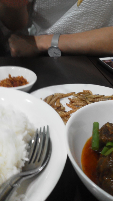 コオロギと竹虫をオーダー。どちらもパリパリで濃い味付けでビールに合う!