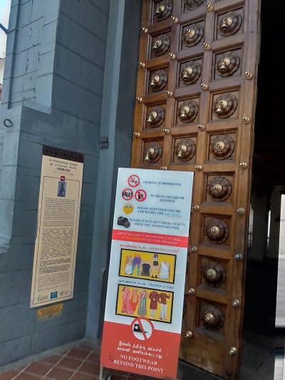 チャイナタウンにあるヒンドゥー教寺院で,貿易港開拓に伴いこのチャイナタウンにインド人も大量に住んでいたことから建造された寺院のようです。入り口では靴を脱がないといけませんが,足をやけどするので靴下は履いておきましょう。