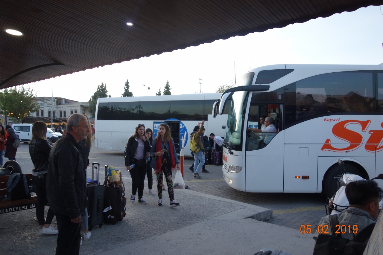 ギョレメのバスターミナルからイスタンブール,イズミール等へ夜行バスが出ていますが,観光客にとって利用価値が高いのはパムッカレへ行く便。前日までに予約,発券をしておかないと,当日では売り切れている可能性が大。途中2~3時間おきに休憩があります。