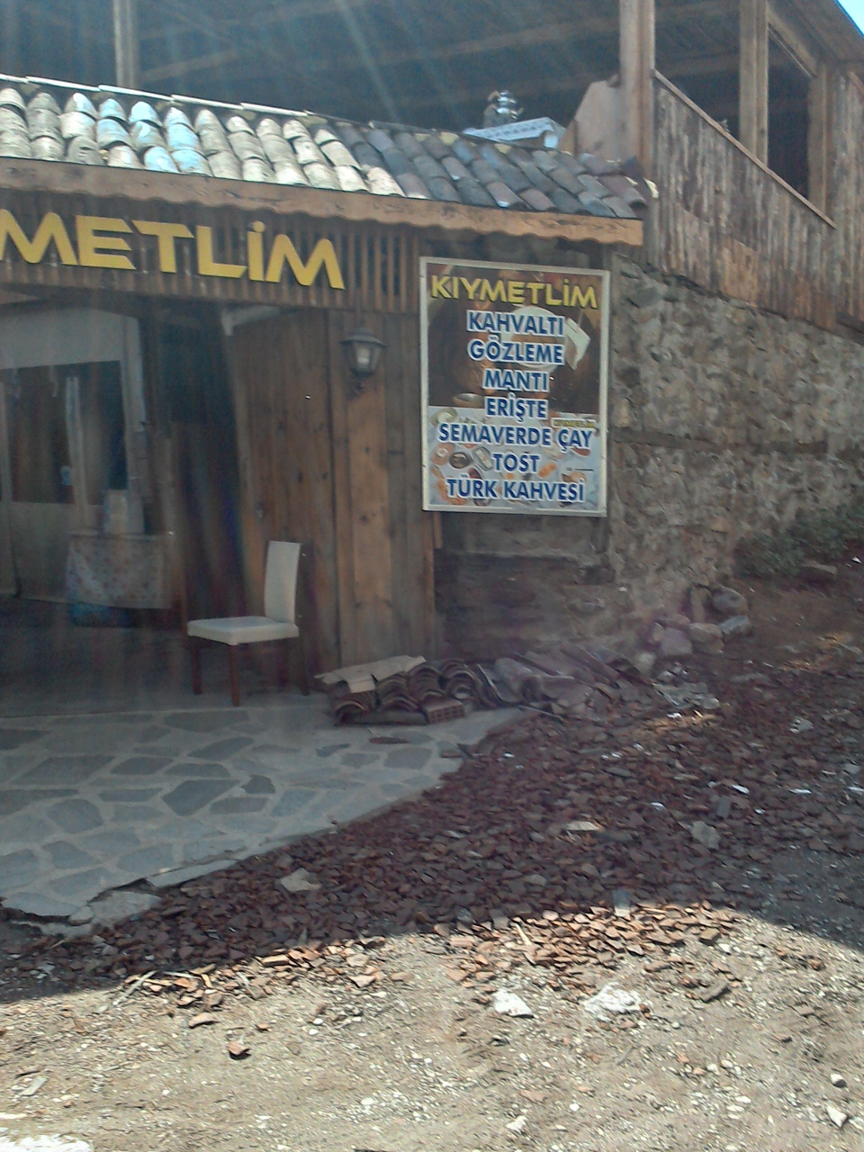 パムッカレ村の石灰棚へ向かう道沿いにある,1Fが不思議な多国籍レストランのホテル。日本人バックパッカーもよく泊まるようで,スタッフも多少日本語が話せたりする。
