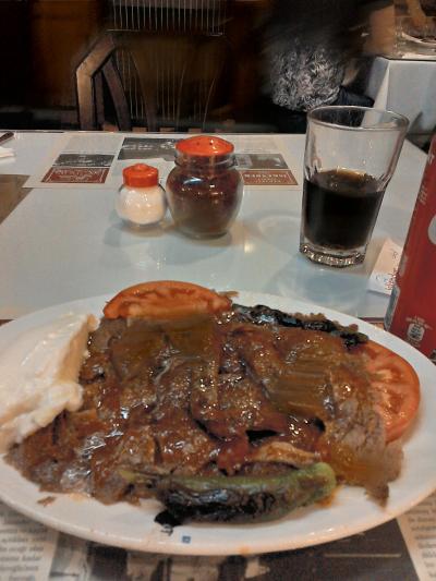 ブルサでの夕食で利用。イスケンデルケバブの名店は2つあり,近くには兄弟が経営する別館もある。本店は広々としていて格調高い雰囲気。ケバブの値段は年々値上がりしているようで,2019年現在,1人前約40リラ。美味しいが高いという口コミが多い。