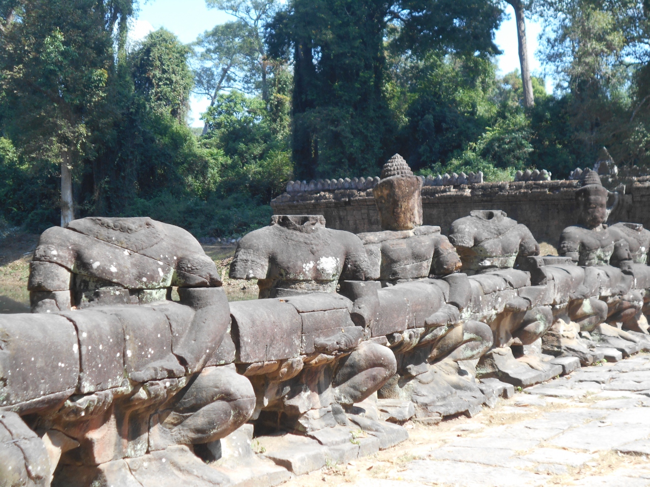 ナーガの胴体を引き合う神々と阿修羅が並ぶ門から,壁面に残された猛々しいガルーダの姿,それに古代ギリシャ建築のような2階建ての謎の建物など,ミステリアスなディテールを随所に残した,見ごたえのある遺跡です。ここを見るためだけに大回りコースをとっても損はしないでしょう。- 旅行時期