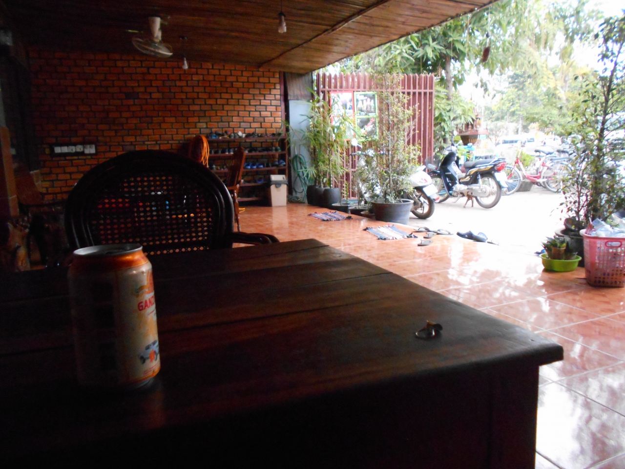 タケオゲストハウス併設のレストラン。簡単なものならそれほど時間をかけずに提供してくれるが,定食類になるとちょっと時間がかかるよう。嬉しいのは,ビールが普通のレストランの半分以下で提供されるので,ツアーの合間にちょっと立ち寄って休憩・一杯なんてことも気軽にできること。