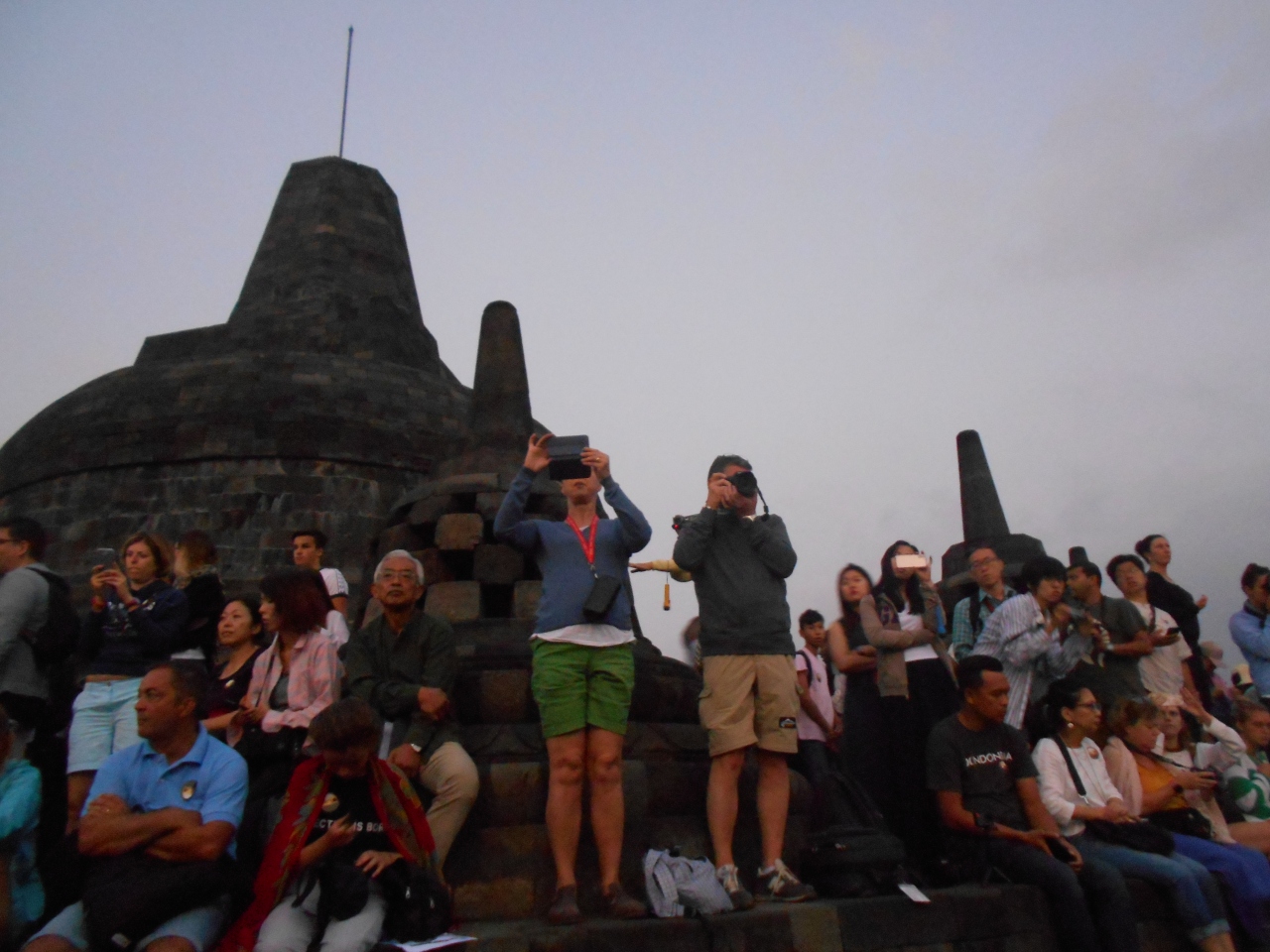 サンライズツアーで訪れたボロブドゥール仏教寺院。遺跡群としてはムンドゥ寺院やパオン寺院を含むのかもしれないが、ボロブドゥール仏教寺院だけでも半日以上の観光は必要。朝靄のなか、夢幻的に浮かび上がるジャングルの表情も美しいが、仏教にルーツを持つ精巧なレリーフを読み解くには、それなりに知識がいることだろう。