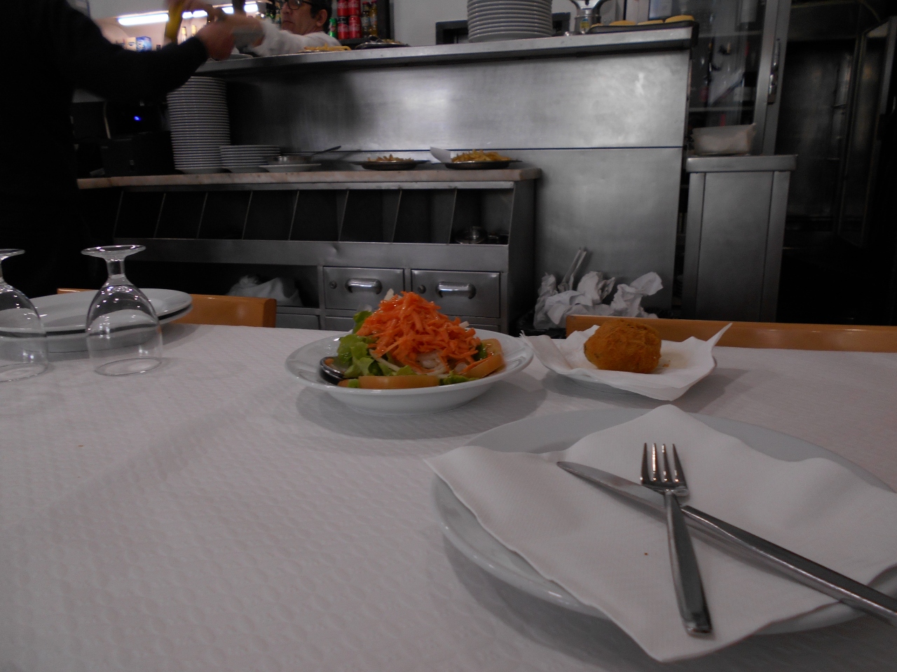 バイシャ地区のにぎやかなポスタス・デ・サント・アンタオン通りを少し進むとわき道に見えるレストラン。地球の〇き方などにも乗っている評判のよいレストランで、魚・肉ともそつなくいい料理を出す。一番有名なのはローストチキンらしく、カウンターにはこればかり並んでいた。