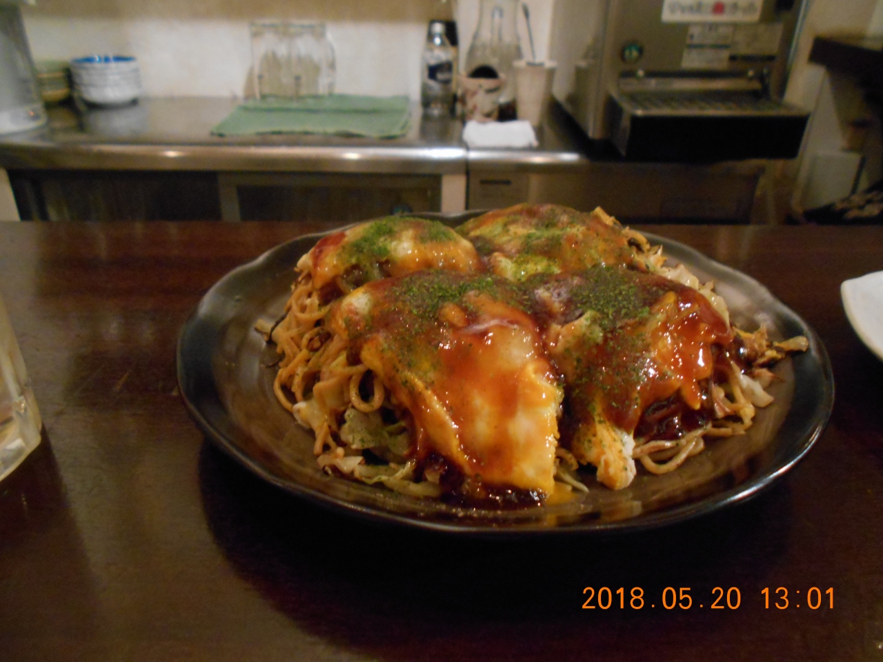 ここの特徴は、半熟卵を使ったトロットロ♪のお好み焼き。