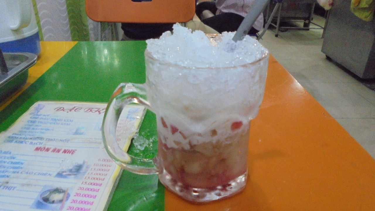 日本人宿などで有名なおこわの店らしく,店内は現地の人でいっぱい。おこわとチェーのどちらも有名なようで,鶏肉のおこわとオリジナルチェーを注文。一緒に持ってくるのでチェーの氷がとけて大変なことになってしまったけど,未体験ならぜひ一度お試しを。