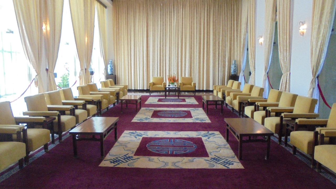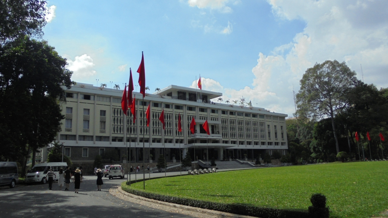 ベトナムがまだ南北に分かれて争っていた時代に大統領官邸として用いられていた建物で,会議室や宴会場,シアターまで備え付けられた立派な建物。