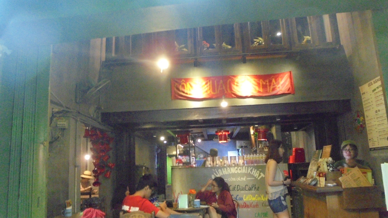 比較的新しいカフェのようですが,ベトナム戦争時代の雰囲気を醸し出すレトロな雰囲気が特徴のカフェ。若者には人気のようで,開店時間は常に混んでいます。居心地も悪くなく,ココナッツミルクを用いたカフェは伝統的ベトナムコーヒーとはまた違った美味しさがあります。