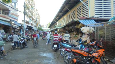 ここにはビンタン市場という紛らわしい名前の市場もあります。とにかく人,バイク,商品の洪水がものすごく,ゆっくり観光するという場所ではないかも。東南アジアの雑踏の中でもすさまじく,人々の生きるエネルギーを体感できる場所ではあります。- 旅行時期