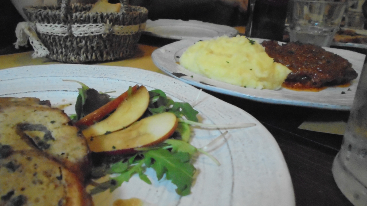 私はガーリックパスタとトマトクロケット、食後にヴィンサントを注文。トマトクロケットは美味しいですが、昼にも同じものを食べたので、ちょっと持たれ気味でした。ヨーロッパは取り分けて食べる文化ですので一人旅だと量が多いかも。
