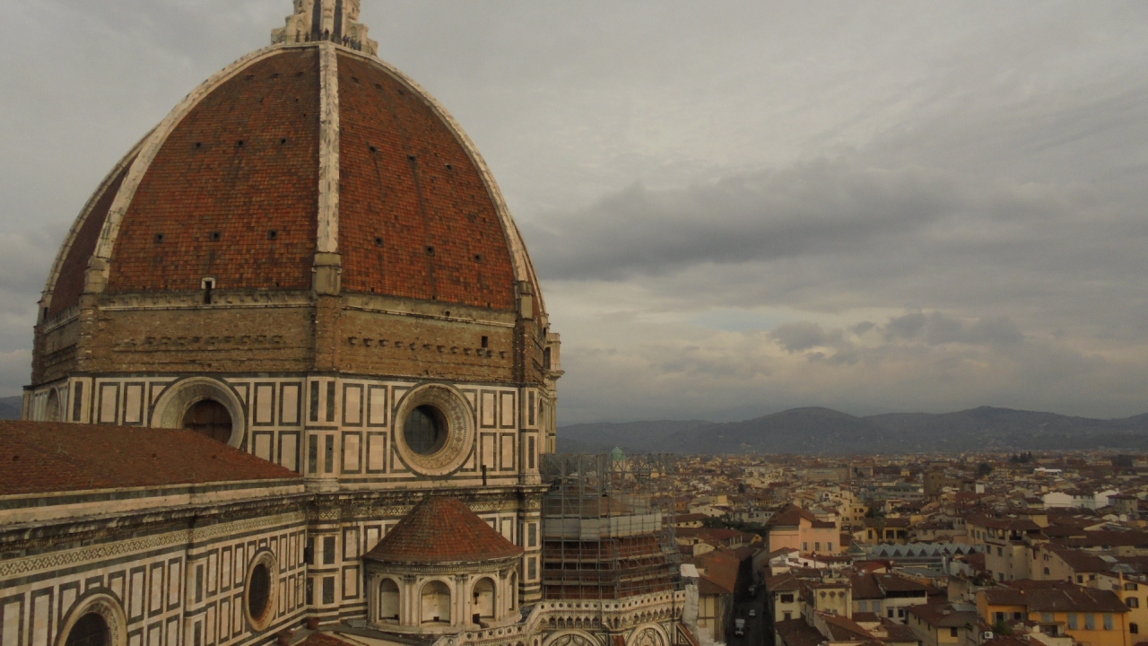 頂上まで登ると、サンタマリア・デルフィオーレ教会のドゥオーモがすぐ近くに見え、圧倒されます。