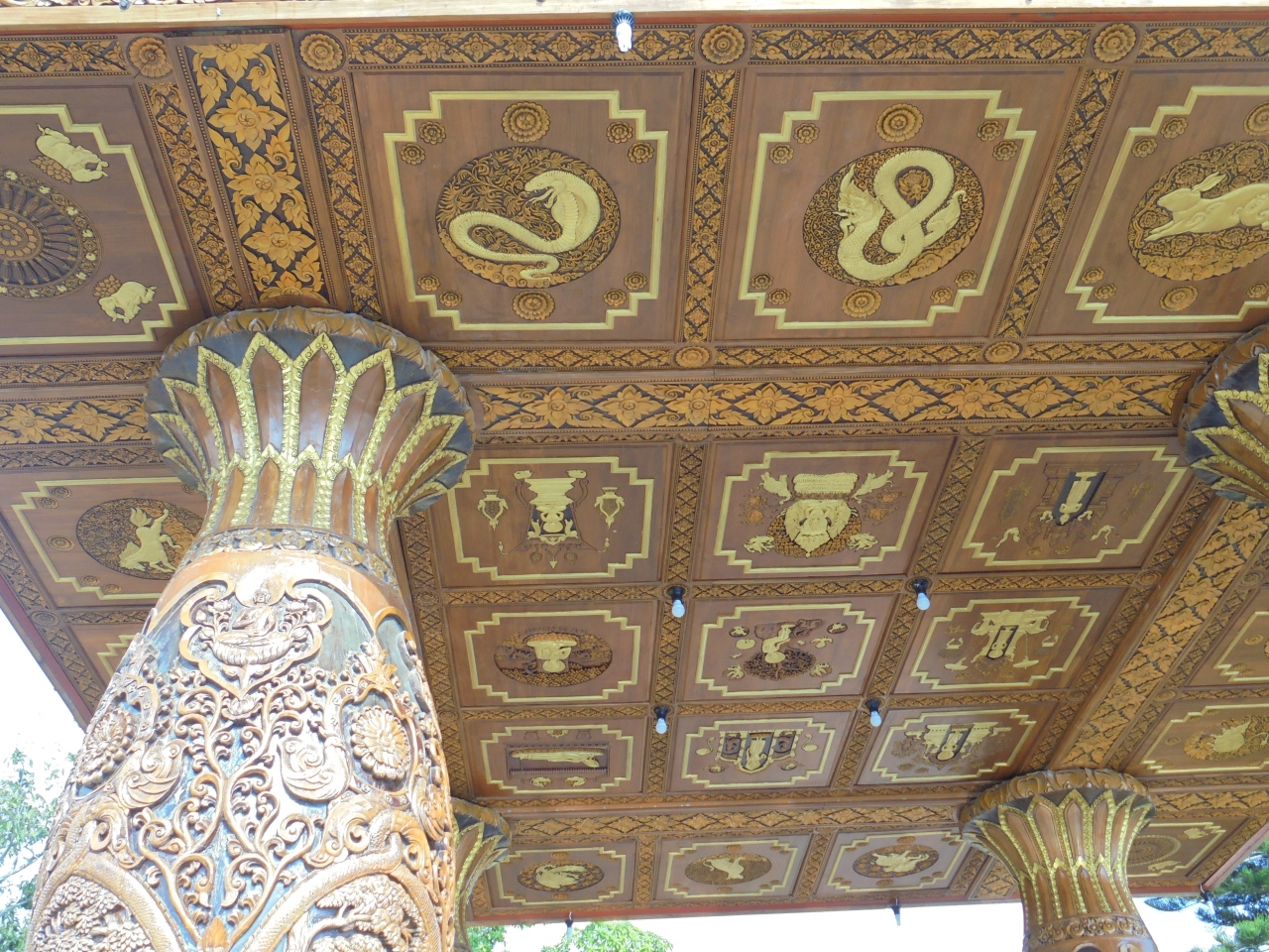 金色のチェーディーやチェンマイ市街の見晴らしに目が行きますが、注目してほしいのは回廊の天井部分のレリーフ。