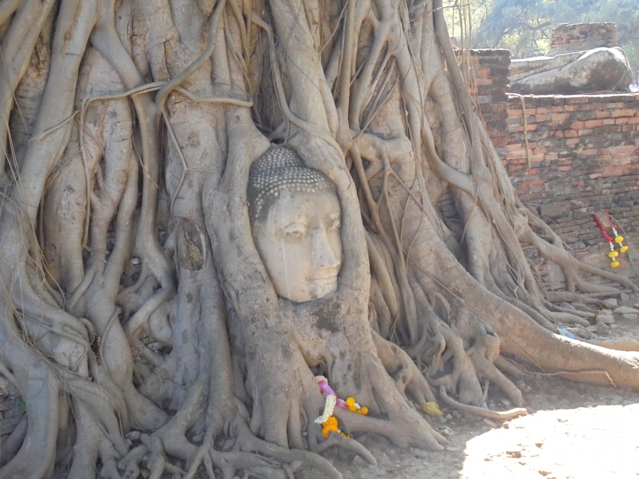 傾いた仏塔の前に鎮座する仏像も有名ですが、木の根に取り込まれた仏像の頭部は何やら不思議な懐かしさと諸行無常を感じさせます。