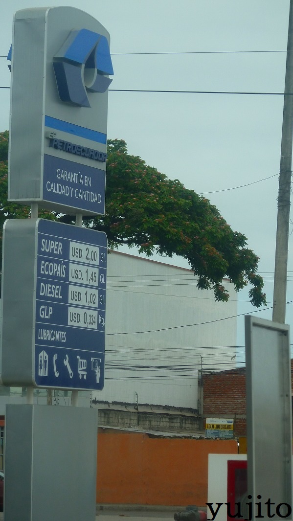 エクアドルのガソリンスタンドはガロンで販売しています。