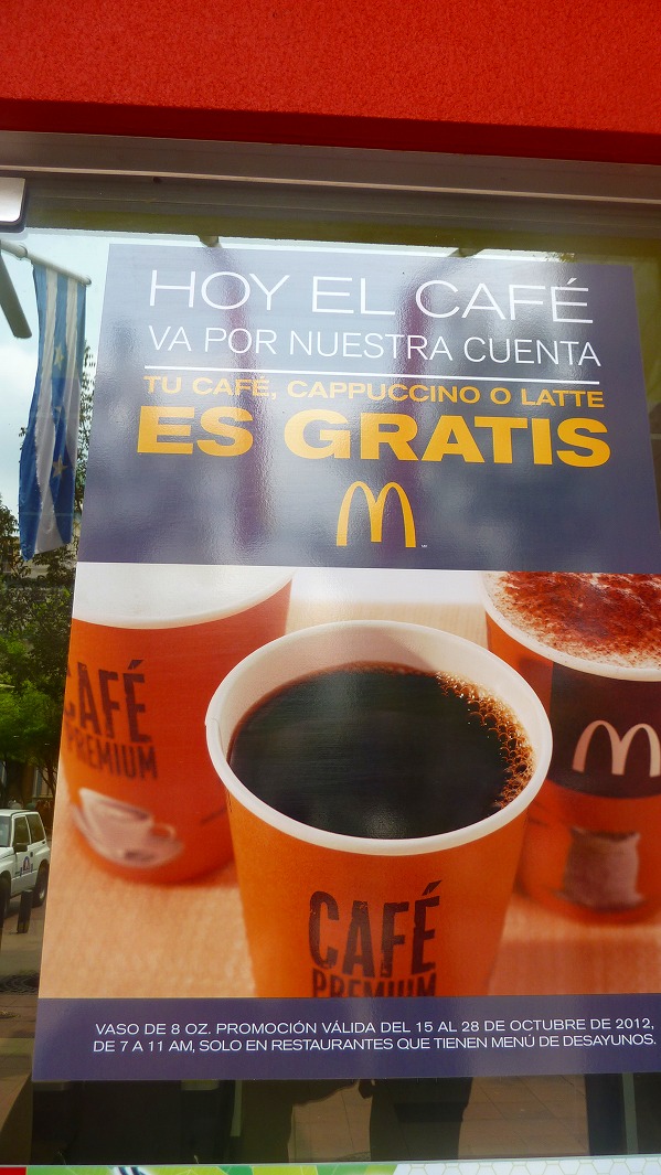 エクアドルのマクドナルドでも無料コーヒーのサービスをやっているみたいです。