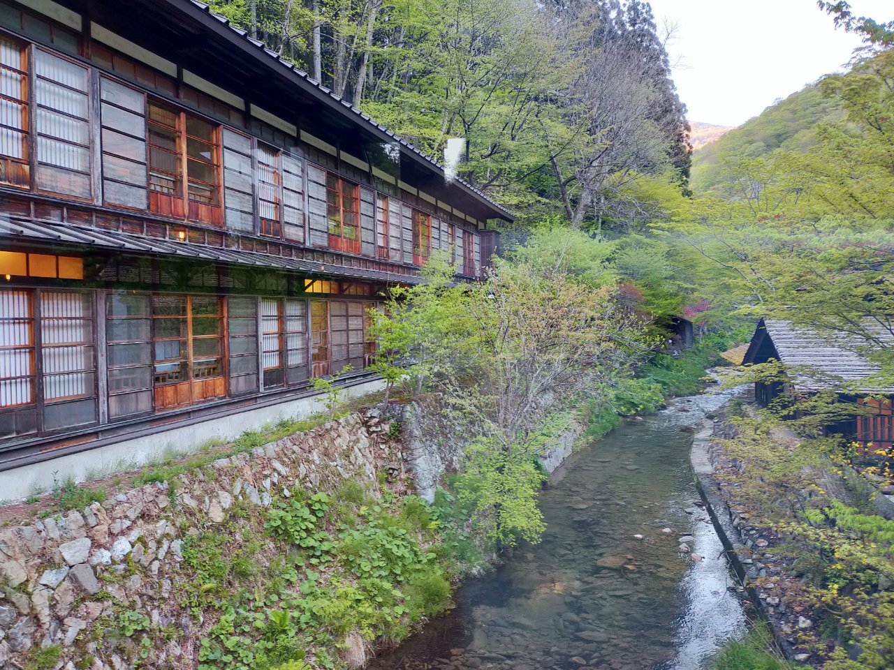 私は別館2階(トイレあり、お風呂なし)に宿泊したのですが、お部屋から見える景色(本館、川、山々)が本当に美しくて、何度見てもハッとしました。というか宿泊している間、廊下の窓から見える景色がいちいち美しくて、何度も立ち止まってしまいました。