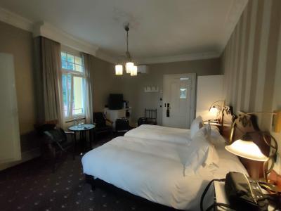 部屋の床は、クラシックホテルにありがちな古いカーペット敷きではなくフローリングなので清潔です。ポットが備えられていないので事前にメールでリクエストしておいたところ、しっかり用意されていました。メールのやり取りも迅速でした。