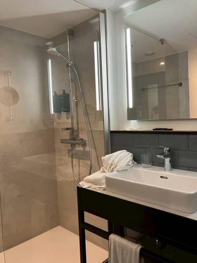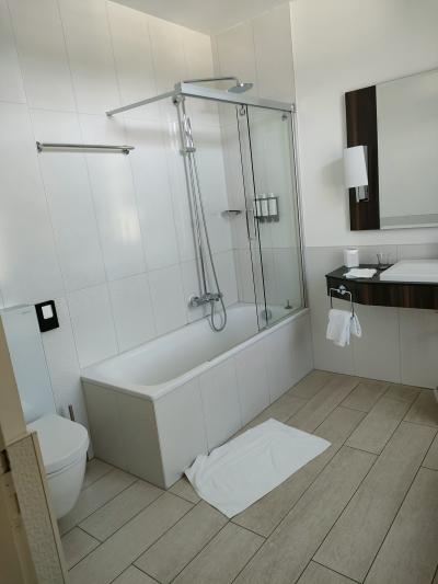 バスルームは清潔ですが、シャワールームの仕切りがほぼないので、バスルームの床全体が濡れないようにかなり気をつけてシャワーを使いました。