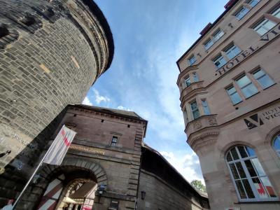 中央駅から歩いて数分、職人広場のすぐ近くです。部屋のカーテンを開けたとき、城壁の塔が目の前にバーンとそび立っていたので、思わず「きゃー」と叫んでしまいました。