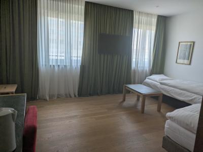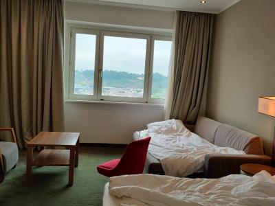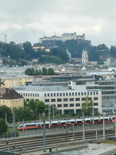 宿泊した部屋は高層階だったので、大きな窓がらホーエンザルツブルク城を望むことができました。晴れていれば山も見えると思います。また、私たちは利用しませんでしたが、朝食レストランが15階にあり、旧市街なども一望できるとのことです。